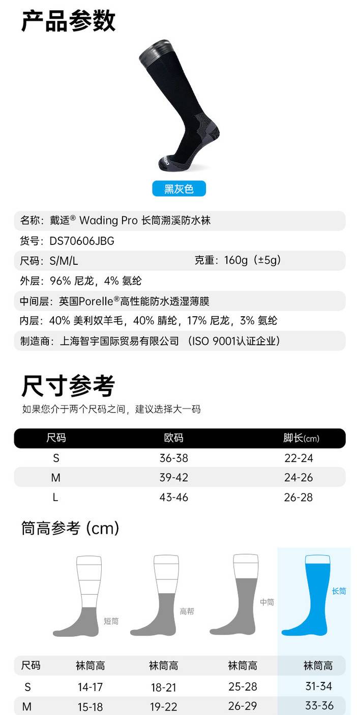 戴适Wading Pro 长筒溯溪防水袜
