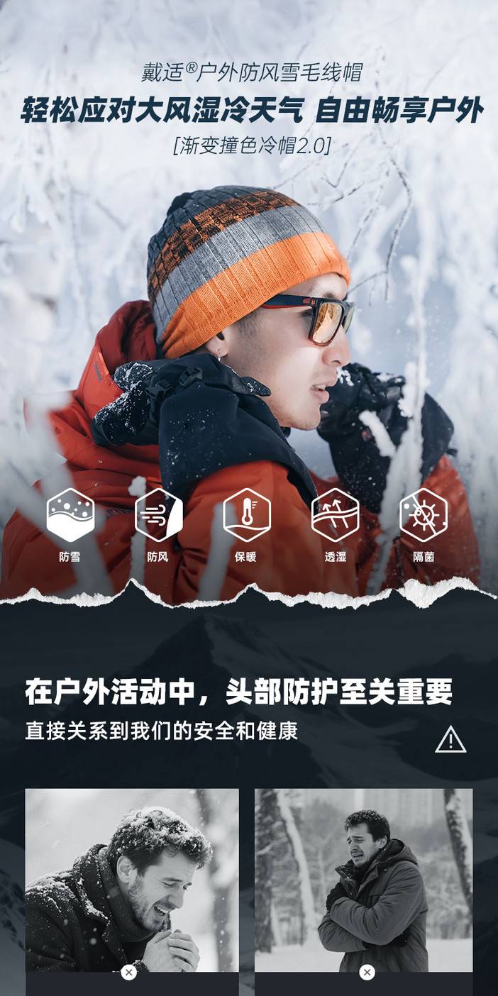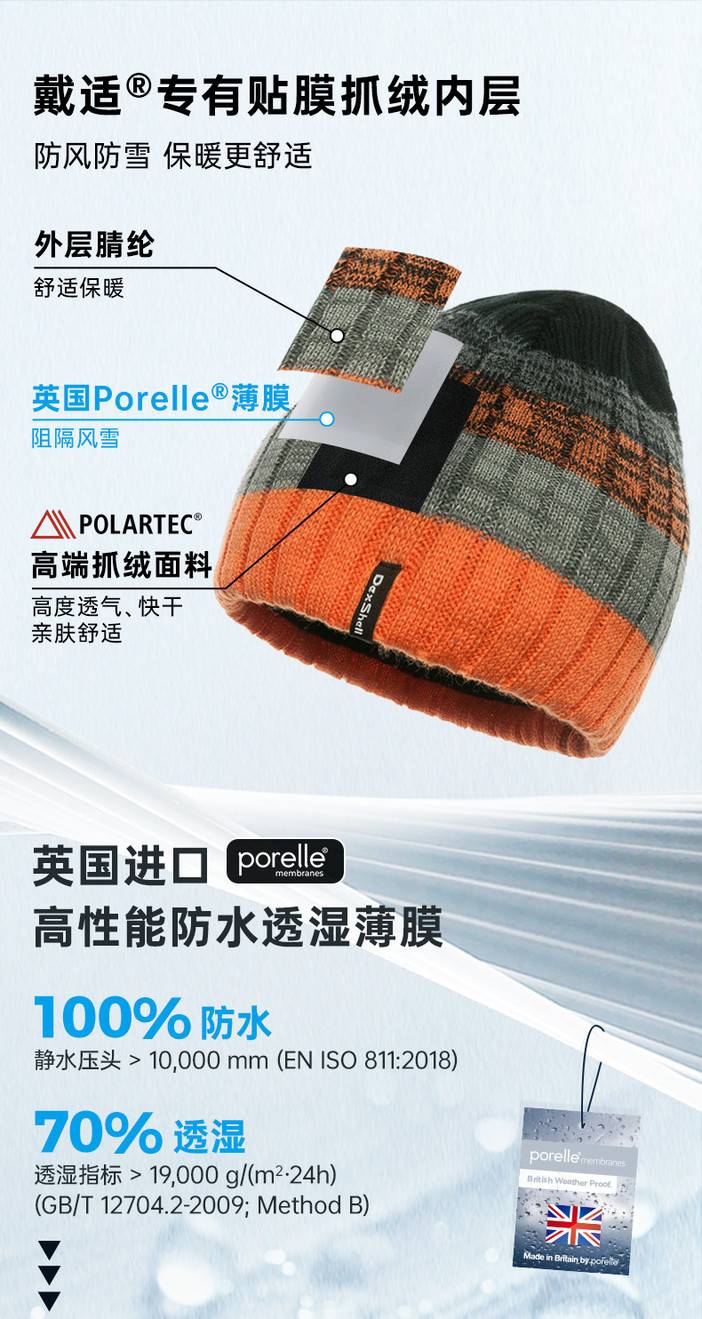 戴适 Gradient 渐变撞色防风防水针织帽2.0