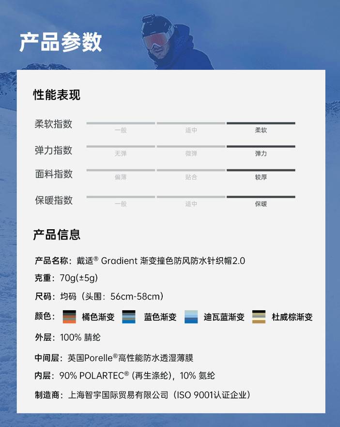迪瓦蓝渐变 升级Polartec内里